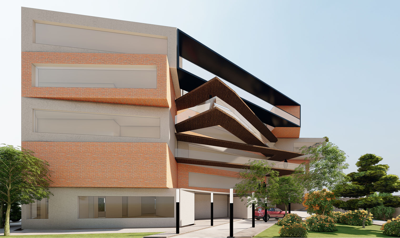 The mixed use of brick and concrete is a design language that will be found in most of our buildings because these are the two materials that work well in contrast with each other and blend even better with the greenery of nature.